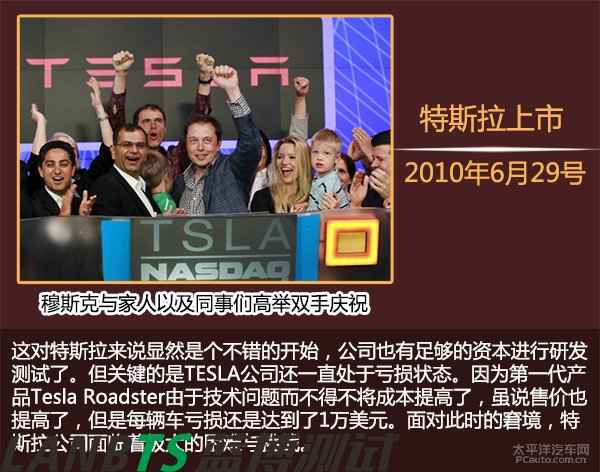 可以說,這三筆錢把Tesla從懸崖邊拉了回來。在熬過這段艱難的時(shí)光后,Tesla的資金情況逐漸好轉(zhuǎn)。2010年特斯拉在納斯達(dá)克上市,融資額達(dá)2.26億美元。開盤當(dāng)日,穆斯克也在帳面上力挽狂瀾地賺了6億3千萬美元。而上市之后,特斯拉股價(jià)在一周之內(nèi)飆升40%,市值一度超過100億美元,將老牌汽車公司菲亞特、三菱甩在身后。
