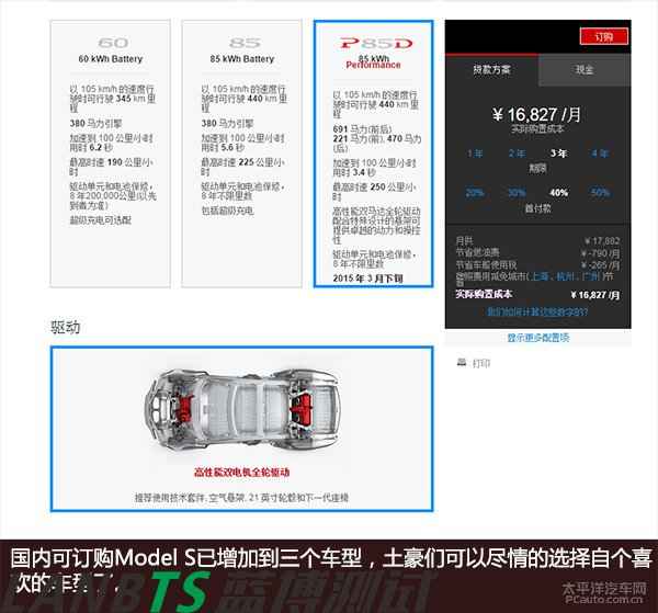 Model S官方介紹其擁有全球電動(dòng)車最長的續(xù)航力,配備85kWh容量電池的Model S,續(xù)航能力可長達(dá)502公里。那么就市面上的純電動(dòng)車,能和Model S續(xù)航相近的也就最近很熱的寶馬I8,其續(xù)航能力能到到500公里,另外比亞迪e6和騰勢(shì) 電動(dòng)車也能達(dá)到了300公里。而其他已經(jīng)上市的純電動(dòng)車?yán)m(xù)航能力也就在200公里左右。