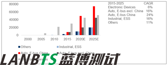 2025 年汽車成為鋰電池最大應用領域
